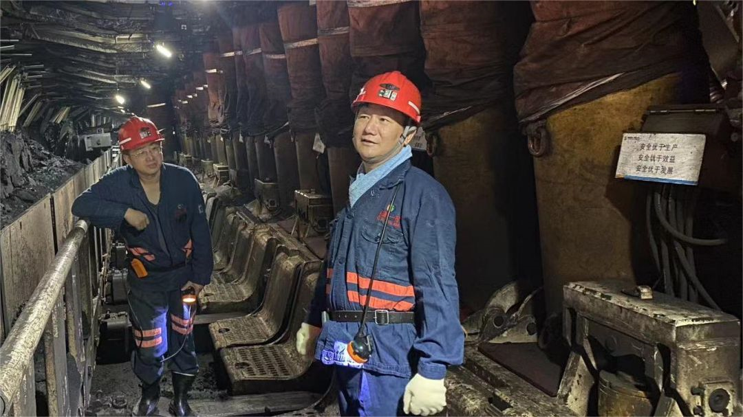 ▲董正庆在伊犁一矿1503工作面进行安全督导 王金刚 摄