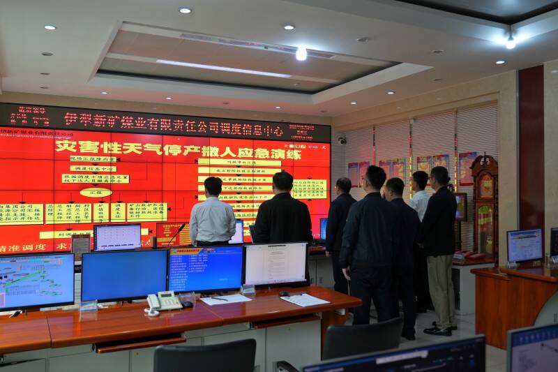 “应急小组相关人员到调度信息中心待命,现场抢险救援组下井……”5月24日,伊新煤业开展矿井灾害性天气事故应急演练,通过演练提高广大干部职工对矿井灾害、突发事故的应急响应、处置能力以及自我保护意识,全面提升矿井应急抗灾能力。