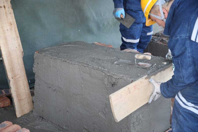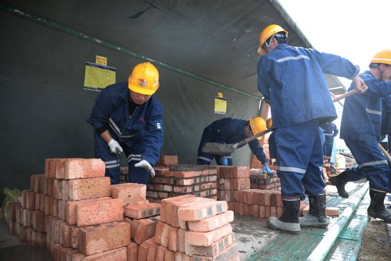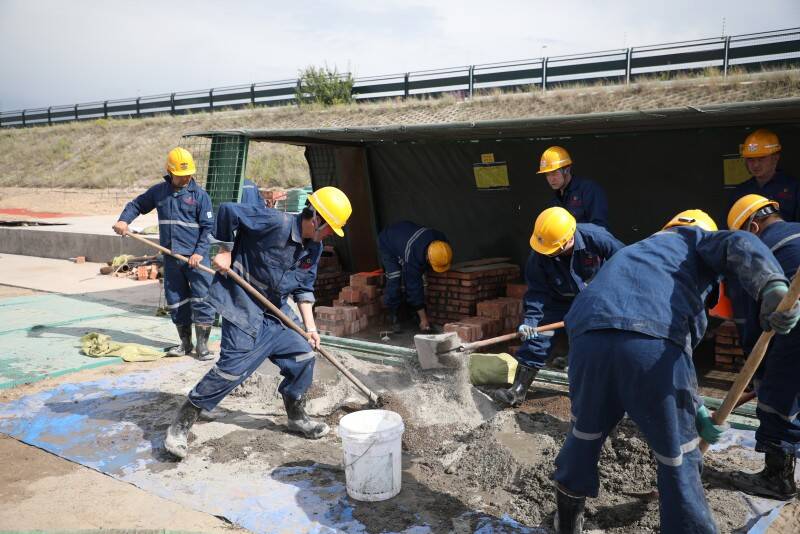 10名密闭工组成5个团队参加密闭工劳动竞赛。竞赛现场,各团队成员分工明确,配合默契,一人负责配置砂浆当“小工”,一把铁锹舞的虎虎生风,一人负责砌筑墙体当“大工”,一把砌刀诠释“工匠精神”。不一会的功夫,横平竖直、整齐排列的密闭墙拔地而起。郭良团队砌筑的密闭墙竖缝错开、横缝水平,夺得大赛冠军。