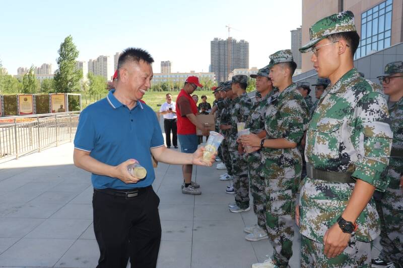 “能喝到蜜雪冰城的冰鲜柠檬水很惊喜,是我们年轻人喜欢的,好喝又解暑。本来都快热‘蔫儿’了,军训休息期间喝上一口,立马又精神起来,公司为我们考虑的很周到。”新员工李亚丹说。