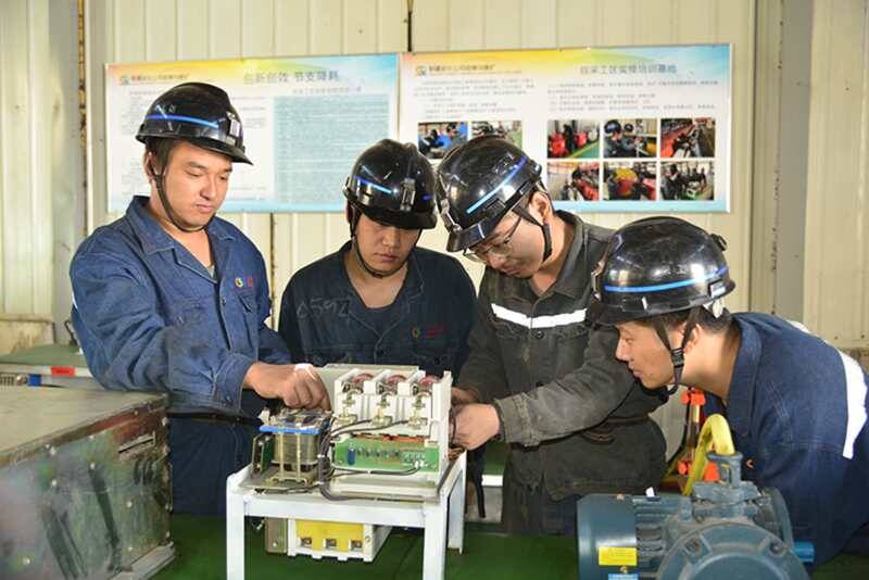 ▲图为硫磺沟煤矿综采工区创新小组成员正在研究创新项目 梁铁 摄