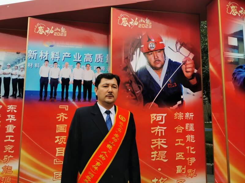 (阿布来提·坎捷在第三届“感动山能”人物颁奖典礼现场)