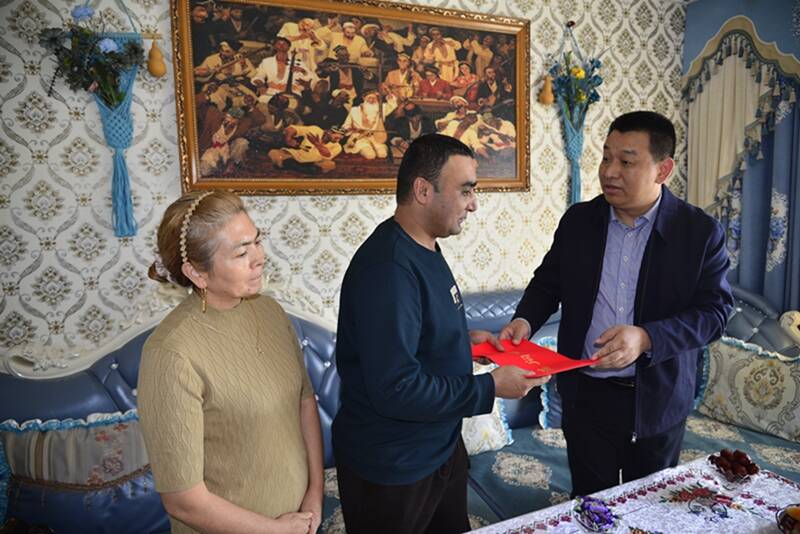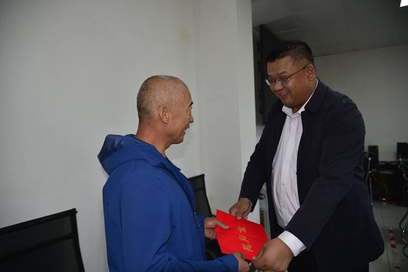 ▲硫磺沟煤矿领导为家庭贫困民族职工送上节日慰问金 梁铁 摄