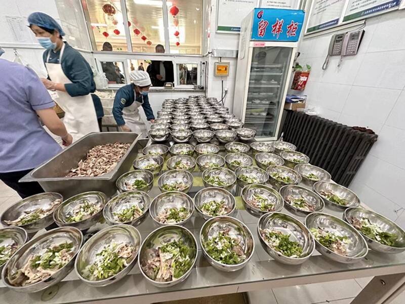 ▲硫磺沟煤矿食堂节日为职工免费提供的羊肉汤 李超群 摄
