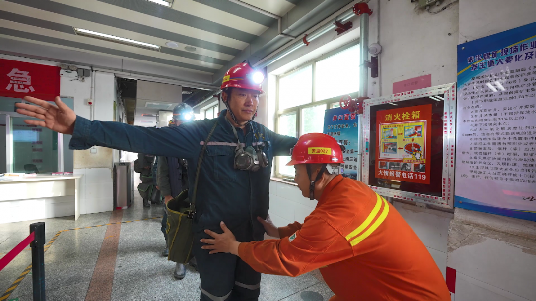 ▲职工入井前安全检查 赵猛 摄