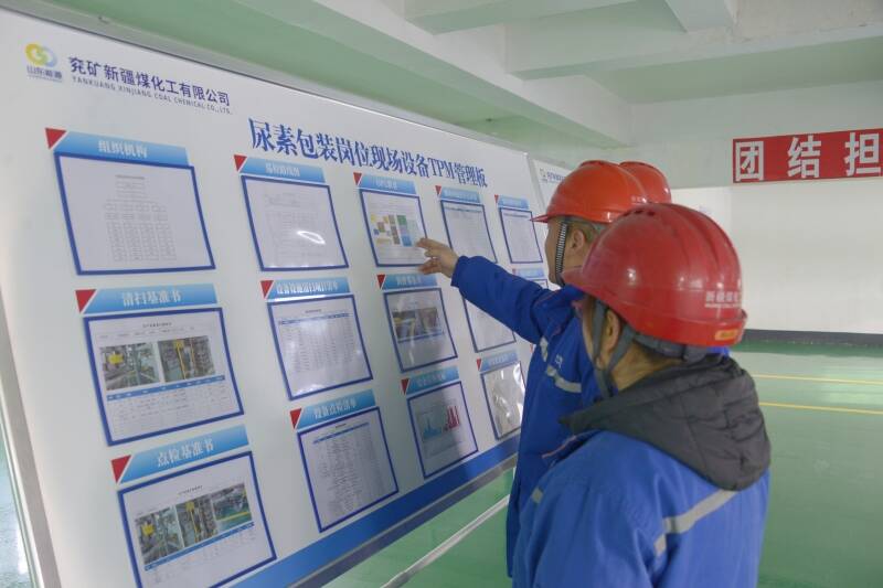 “我们车间按照公司‘6S’管理要求,自发组织职工对现场地面进行分区划线,规范工作区、巡检路及安全通道,保障职工的作业安全。还在现场摆放了管理排版和包装岗位改善成果展示板,职工们可以通过安全绿十字看到系统安全高效运行时长,学习每周一题增长业务知识,查看清扫、润滑、点检基准书更加清晰的了解设备运行情况。”尿素车间副主任郑和虎说。