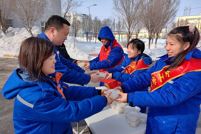 活动中,志愿者和女工协管员将寓意着团圆的汤圆送到职工手中,叮嘱职工们在工作中时刻注意安全,遵守操作规程,确保自身和他人的生命安全。