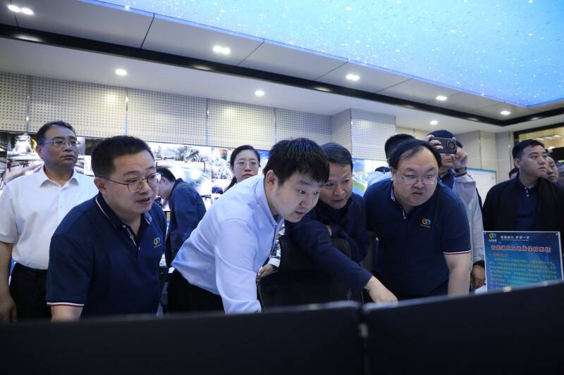 升井后,劳模工匠们来到该矿智慧矿山指挥中心,参观智能采煤、智能信息、智能地测等系统运行情况,详细了解该矿在智能化建设方面做法和经验。