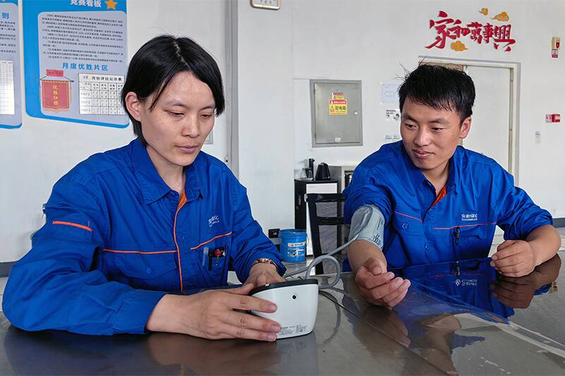 班组排查保健康。班组是企业管理中的基本单位,该公司通过“班前班后会、工前五分钟”对当班人员进行逐个排查,检查班组人成员的精神状态、身体情况,对“三高”人员进行一日三次或多次检测和关注,确保在岗人员的安全和健康。