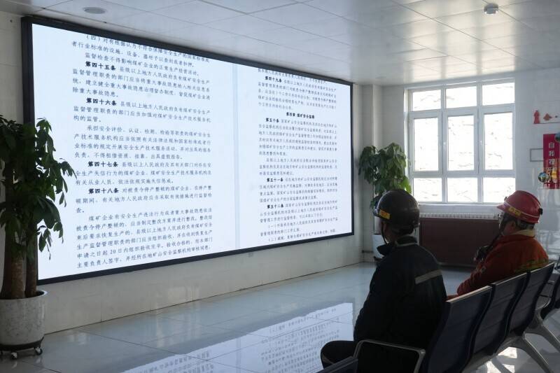此外,该公司充分利用广告机、宣传栏、电子屏等宣传阵地,循环播放《煤矿安全生产条例》解读视频,展示《煤矿安全生产条例》具体内容。通过直观生动的画面,让职工们更加深入地了解条例的精髓和重要性,进一步提升职工安全意识,推动企业安全生产环境持续向好发展。