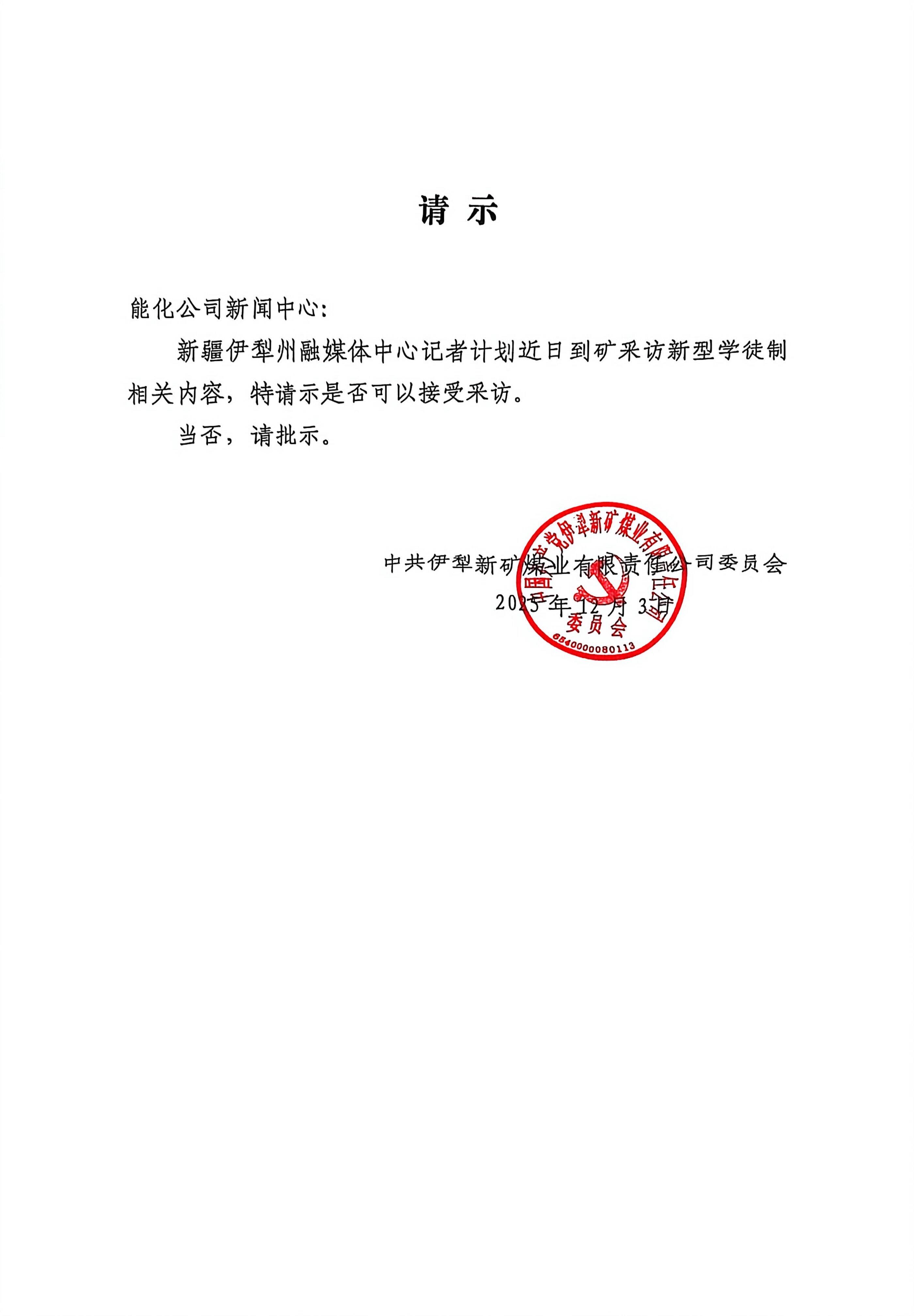 【请示】伊犁州融媒体中心记者拟到矿采访