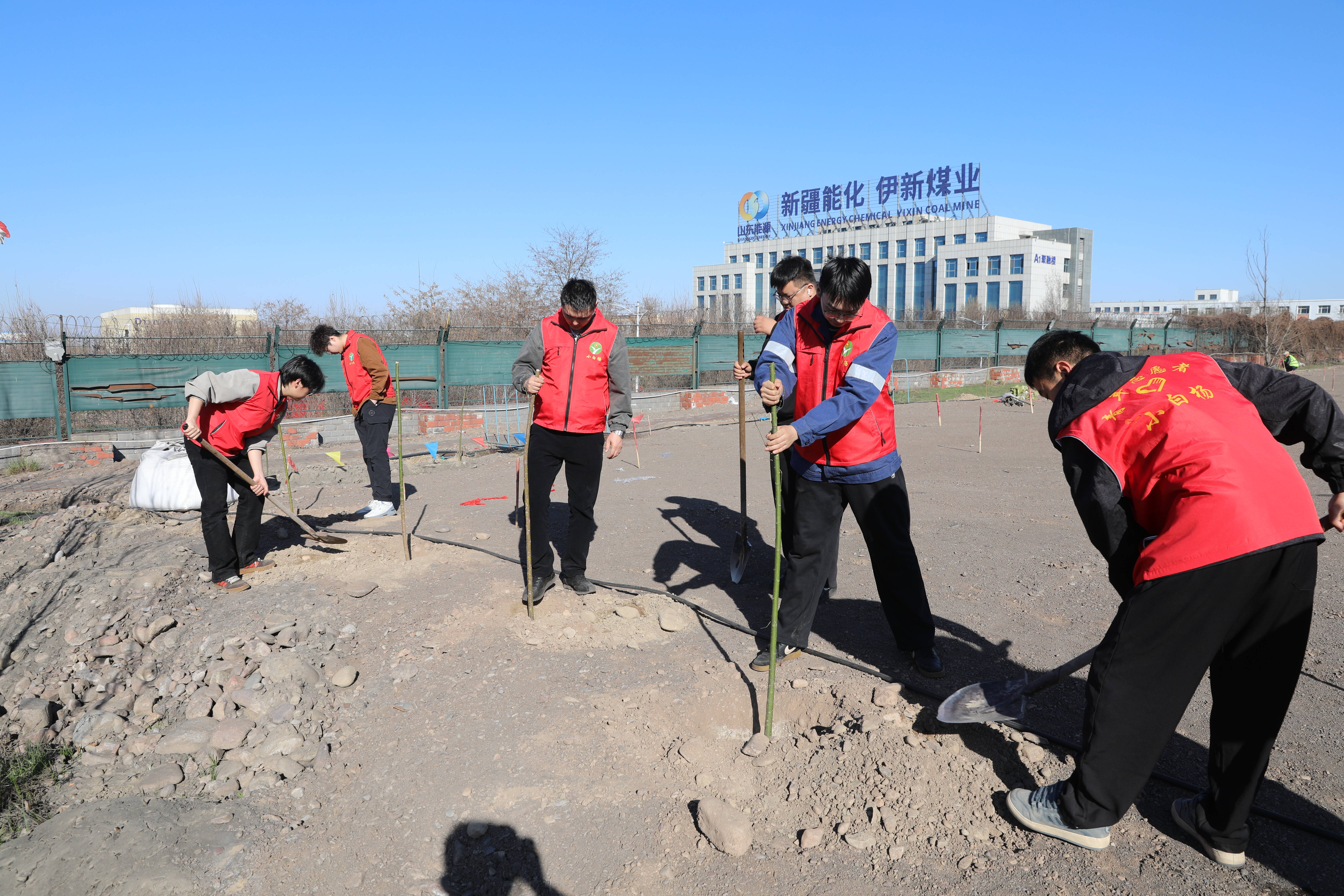 伊新煤业抢抓春季植树黄金期,组织“小白杨”青年志愿者开展义务植树活动,以实际行动为矿山添绿增彩。